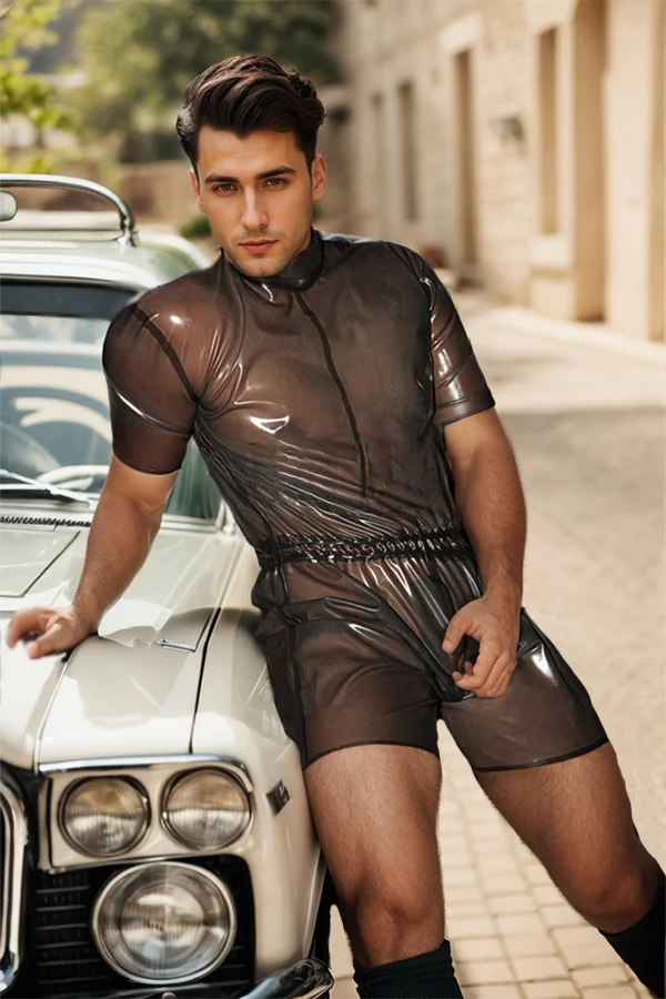 The 'Men's Zipperless Latex Jogging Suit' is a comfortable and cool take on casual wear, offering a unique, relaxed fit. This suit combines a high-shine finish with a laid-back, sporty silhouette, perfect for an effortless and modern look.